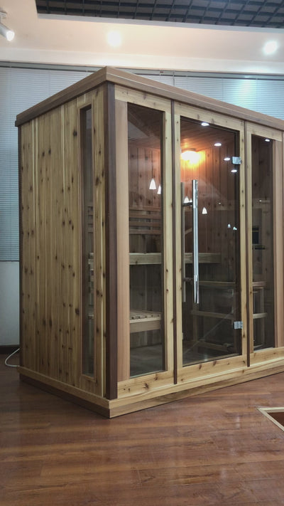 The Charleston 4-Person Indoor Traditional Sauna is designed to bring friends and family together for an authentic, high-heat sauna experience in the comfort of your home. Spacious and thoughtfully designed, it offers the perfect balance of social seating and full-body relaxation.